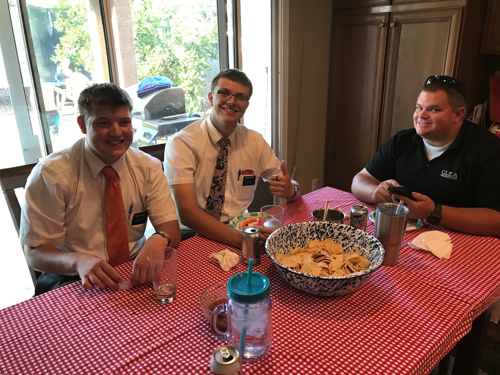 * Saturday night we had our darling missionaries over with some friends for dinner.