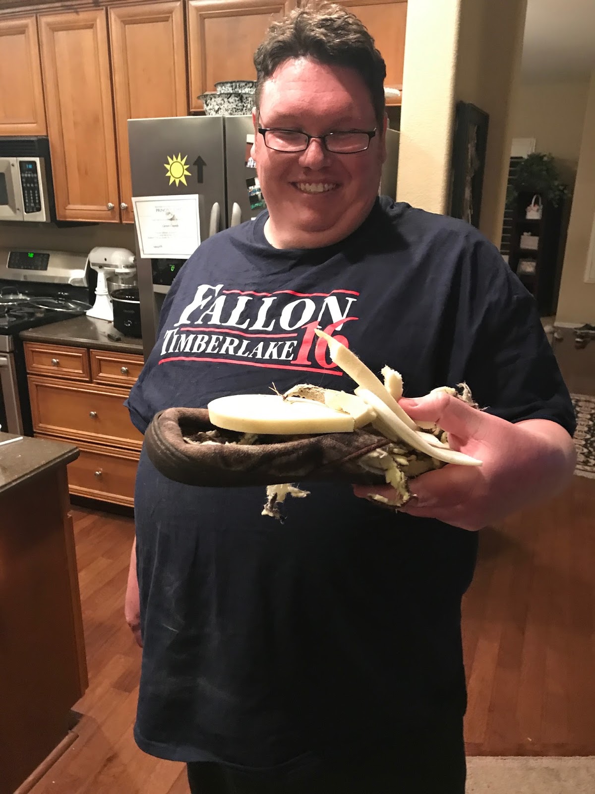 Cubby got the best of Kent’s house slipper while we laughed our heads off playing Quiplash.