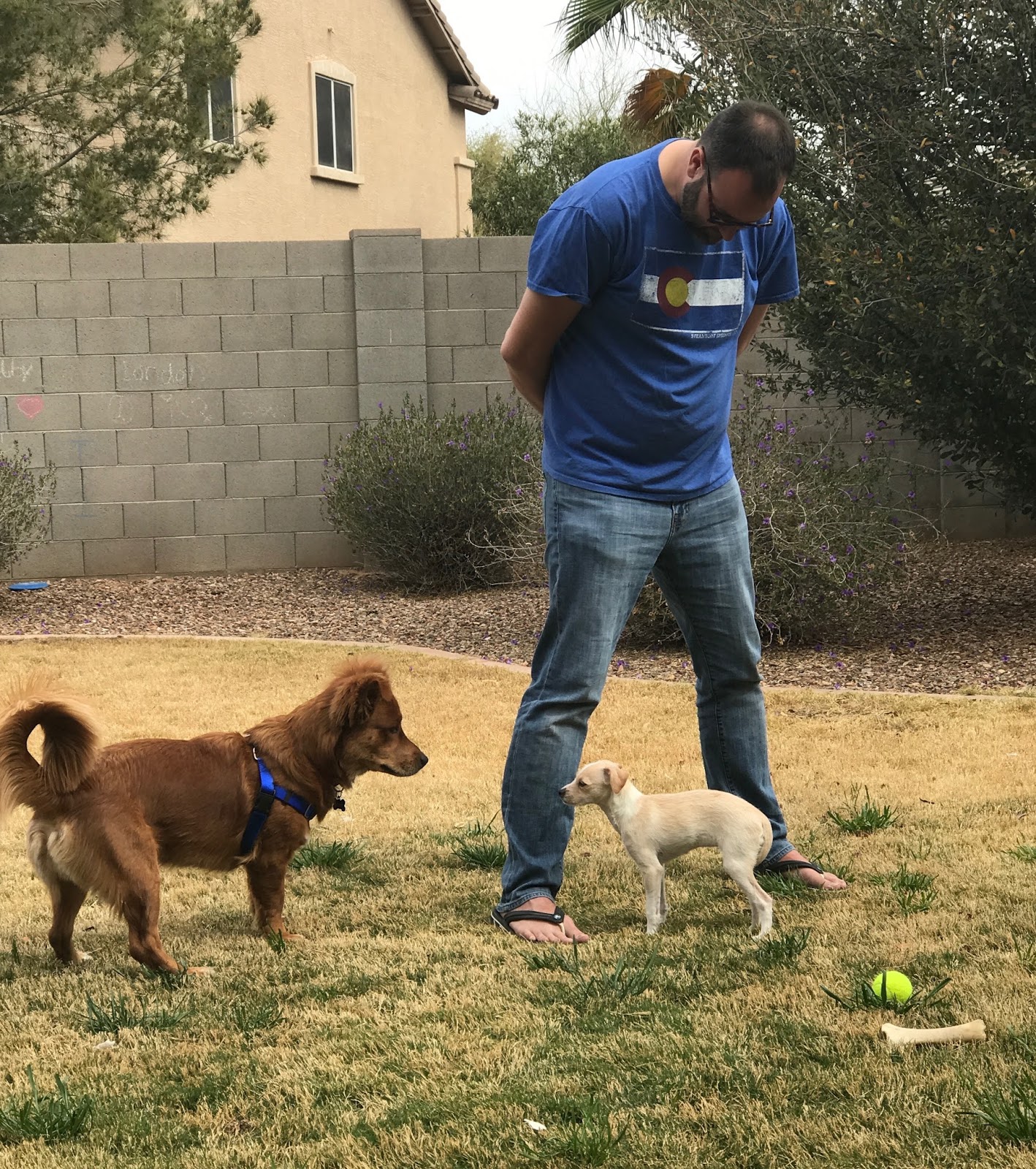 It was a little like David and Goliath at first ๐ but these 2 warmed right up to each other and we’re so excited to have more doggies in the family.