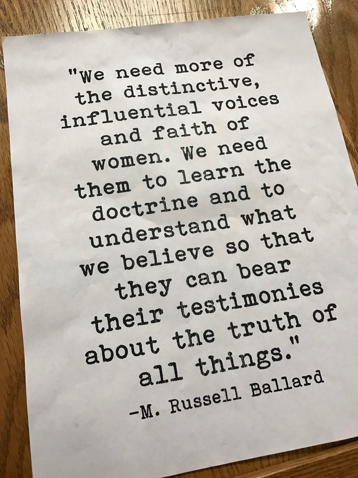 More ward conference lessons in Relief Society and gosh, I love this quote that we get to share. I feel like women! – – we need this MORE THAN EVER!!! The world NEEDS us!!!