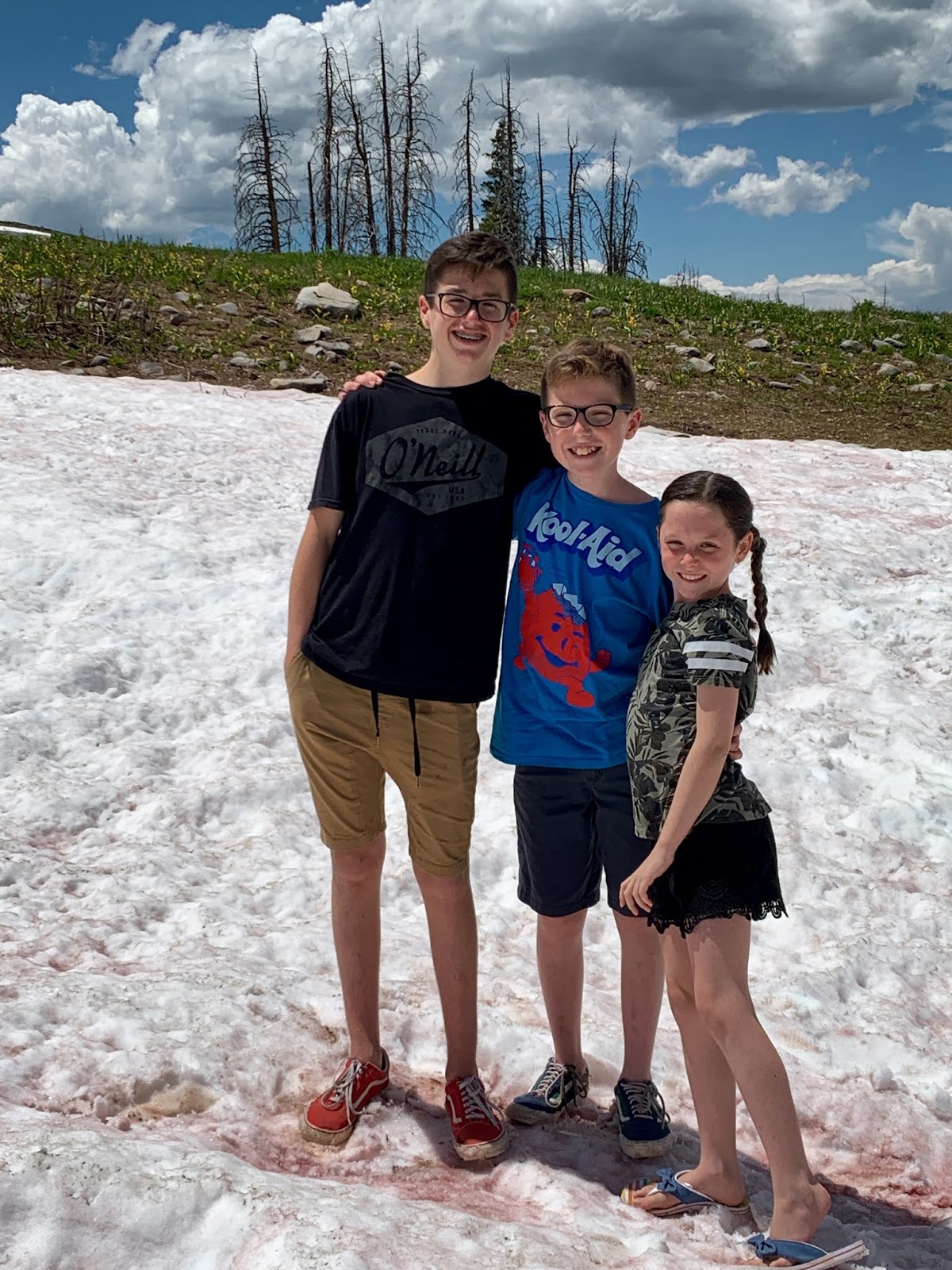 Our friends humored us and let us stop at the big patch of snow up there. My kids NEVER see snow so this was BIG!